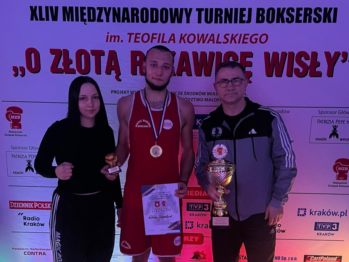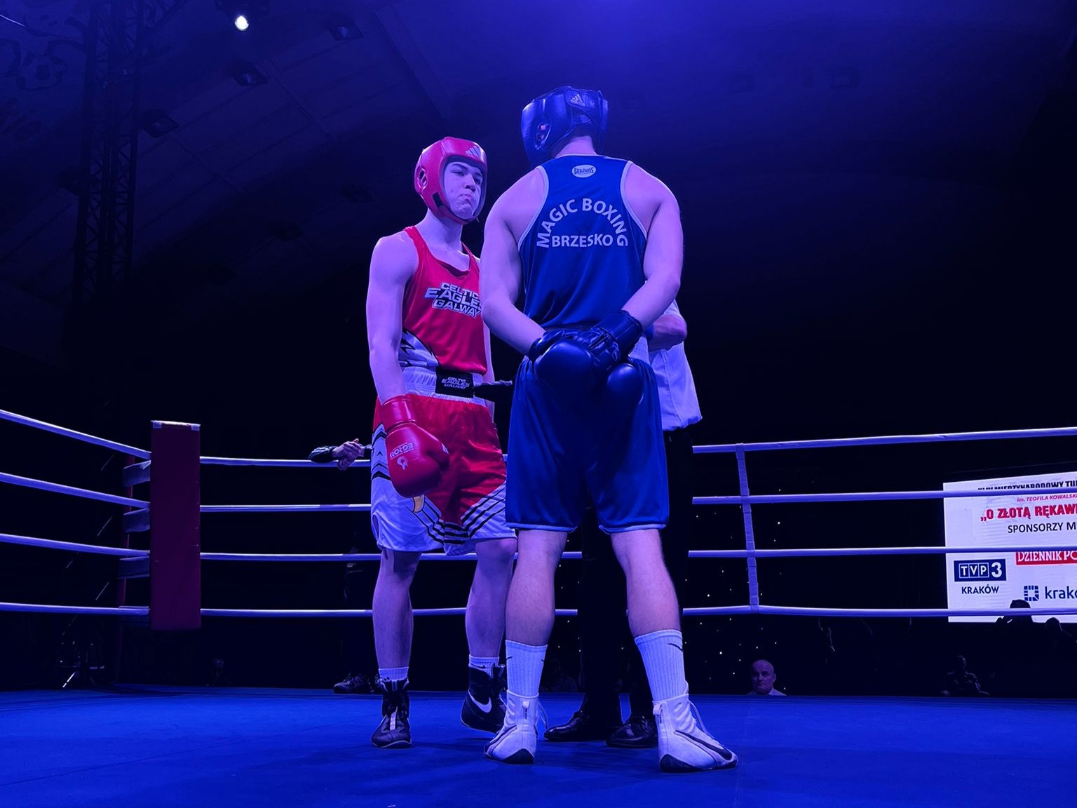 W dniach 11-13 grudnia 2025 r. odbył się 44. Międzynarodowy Turniej „O Złotą Rękawice Wisły”, na którym nasz uczeń – Wiktor Siembab stoczył dwie walki. W walce półfinałowej wygrał niejednogłośnie na punkty z vice-mistrzem Irlandii. Walkę finałową wygrał jednogłośnie na punkty z kolegą z kadry. Obie walki w wadze 80 kg (półciężka). Tym samym ukończył sezon z siedmioma walkami bez porażki!