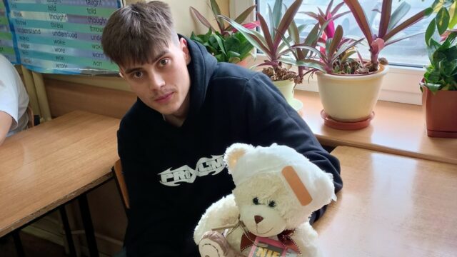 Najpierw uczniowie klasy 3a opatrzyli „pokrzywdzone” maskotki, w ramach zajęć z pedagogiem, następnie delegacje klas 1a, 2a, 3a i 3b przeszli ulicami: Szujskiego, Pułaskiego, Sikorskiego i Szkotnik gdzie pozostawili misie dając Im szansę na nowy, bezpieczny dom bez przemocy.