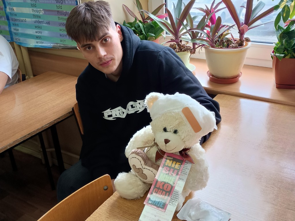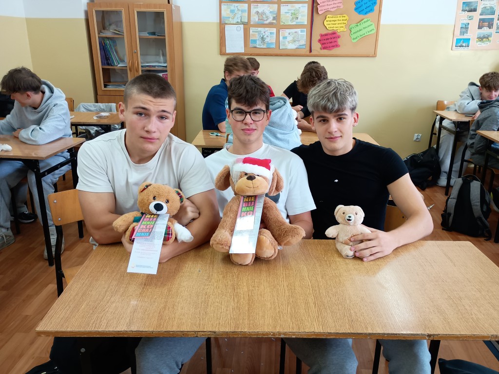Najpierw uczniowie klasy 3a opatrzyli „pokrzywdzone” maskotki, w ramach zajęć z pedagogiem, następnie delegacje klas 1a, 2a, 3a i 3b przeszli ulicami: Szujskiego, Pułaskiego, Sikorskiego i Szkotnik gdzie pozostawili misie dając Im szansę na nowy, bezpieczny dom bez przemocy.