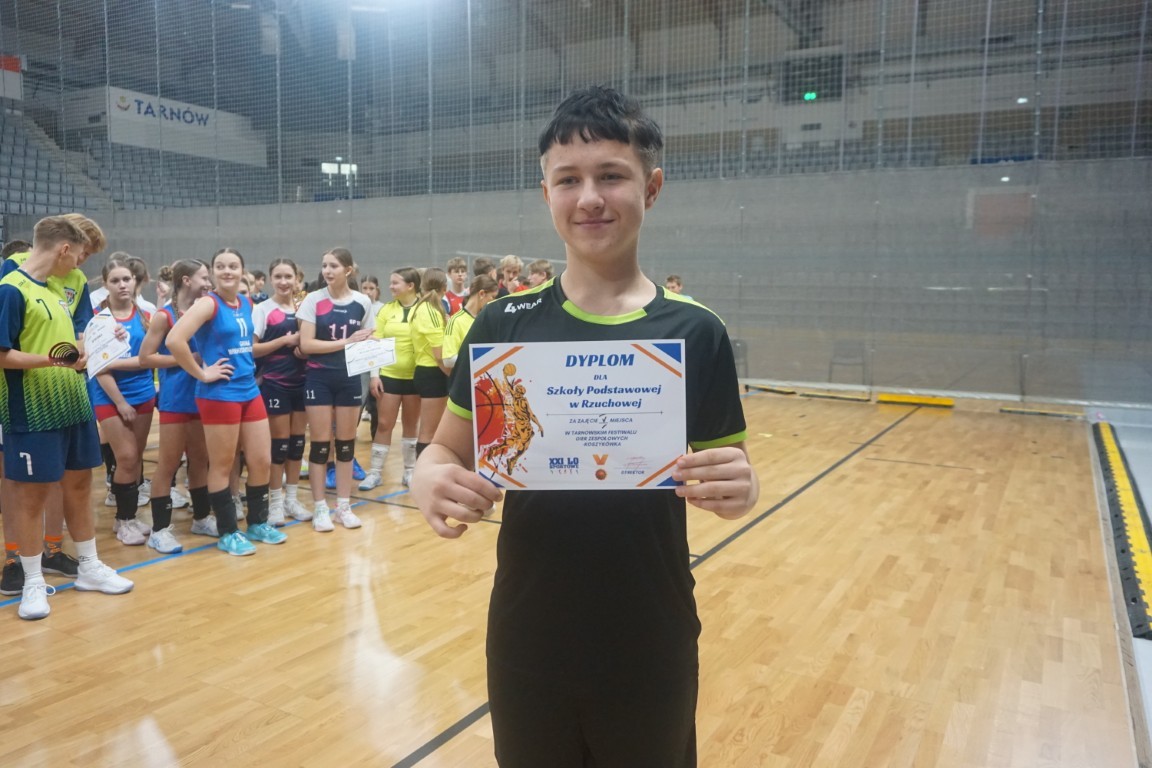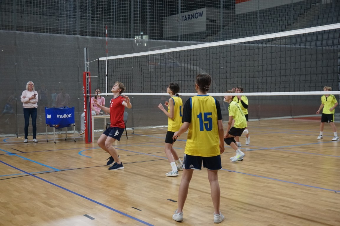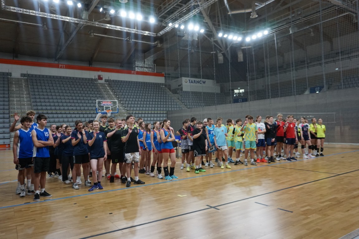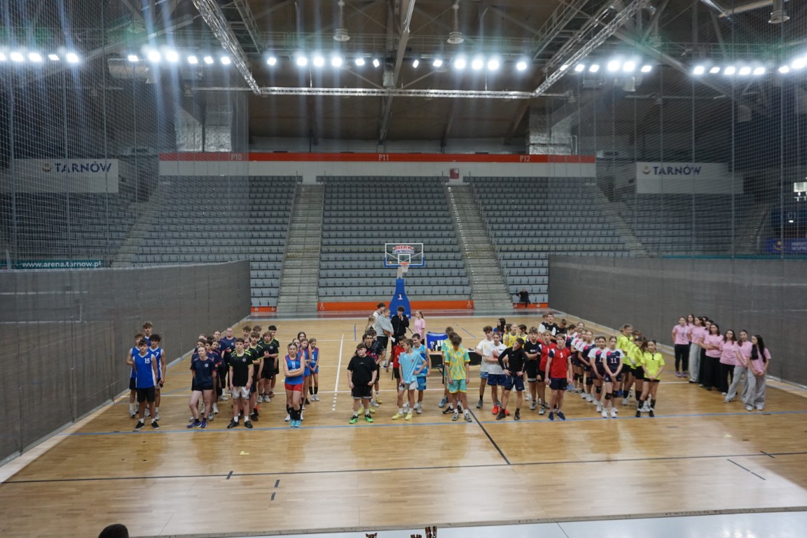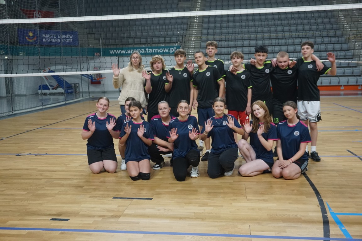 W poniedziałek 20.10. 2025 r. w Hali Sportowej „ Jaskółka” w Tarnowie odbył się I Tarnowski Festiwal Gier Zespołowych zorganizowany przez naszą szkołę. Wzięli w nim udział uczniowie klas ósmych szkół z terenu miasta i powiatu tarnowskiego. Dobrej zabawy i rywalizacji sportowej nie brakowało. Uczniowie rywalizowali drużynowo w dwóch dyscyplinach siatkówce i koszykówce.