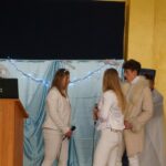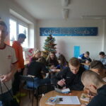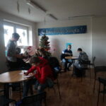 20 grudnia upłynął w naszej szkole w świątecznej atmosferze. O godzinie dziewiątej samorząd uczniowski zaprosił całą społeczność do sali gimnastycznej na jasełka. Miały one charakter anielsko – diabelskiego pojedynku, w którym, oczywiście, ostatecznie zwyciężyło niebo. Spektaklowi towarzyszyło radosne kolędowanie. Na zakończenie przedstawiciele młodzieży złożyli wszystkim świąteczne życzenia, a następnie poszczególne zespoły pod opieką wychowawców udały się na klasowe wigilie.