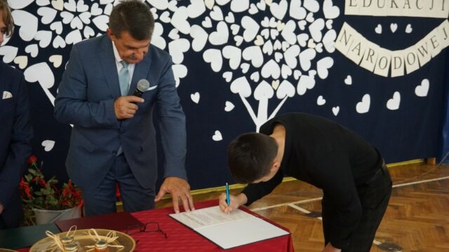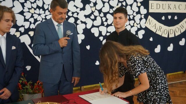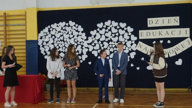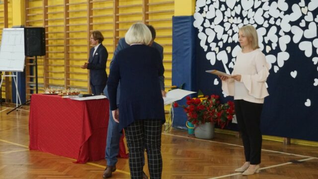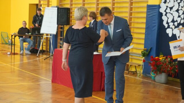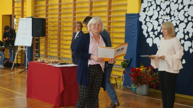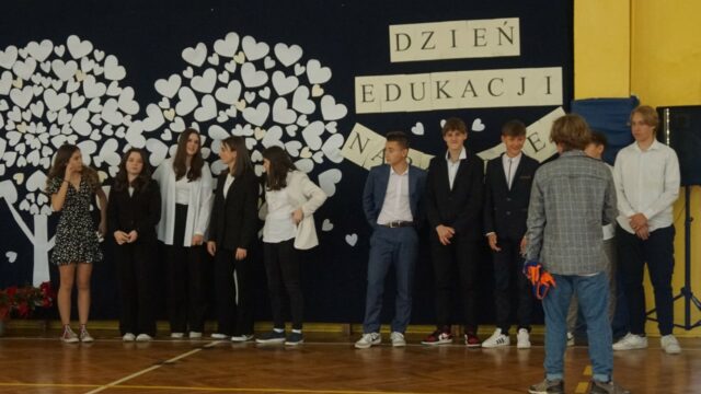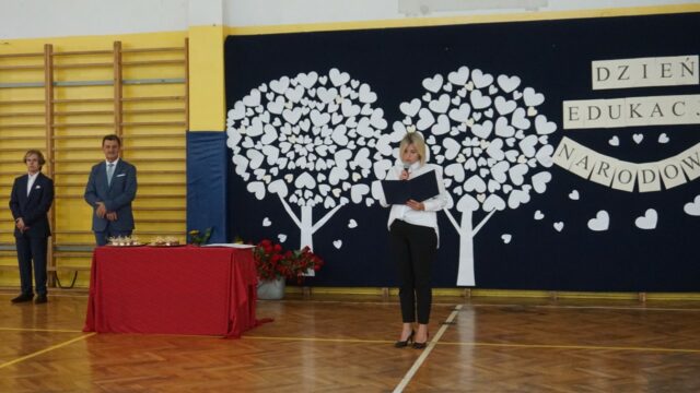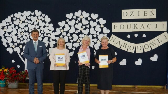 13 października społeczność XXI LOS w Tarnowie uczestniczyła w uroczystości z okazji Dnia Edukacji Narodowej. Zebranych przywitał dyrektor szkoły p. Marek Niemczura, który następnie zwrócił się z życzeniami do grona pedagogicznego oraz pracowników administracji i obsługi. Jak zawsze przy tej okazji zostały wręczone nagrody dla wyróżniających się w pracy nauczycieli. Nagrodę Prezydenta Miasta Tarnowa otrzymała p. Maria Maślak, zaś Nagrodę Dyrektora XXI LOS panie: Sylwia Drwal, Ewa Ryś i Renata Ząbek. Nauczyciele otrzymali także życzenia od przewodniczącej Rady Rodziców – p. Ewy Romanowskiej oraz od swoich wychowanków za pośrednictwem przewodniczącego szkoły – Patryka Mleczko. Do życzeń dołączono kwiaty oraz słodki upominek przygotowany przez samorząd uczniowski.