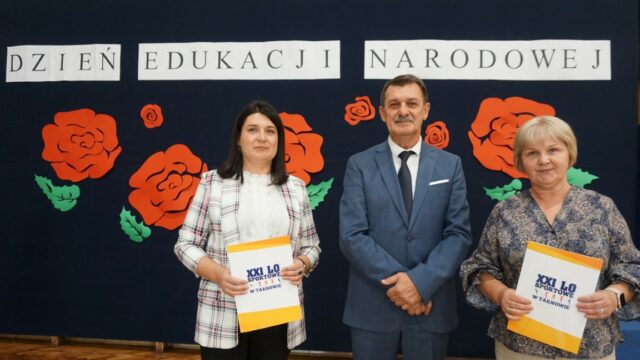 15 października społeczność XXI LOS w Tarnowie uczestniczyła w uroczystości z okazji Dnia Edukacji Narodowej. Zebranych przywitał dyrektor szkoły p. Marek Niemczura, który następnie zwrócił się z życzeniami do grona pedagogicznego oraz pracowników administracji i obsługi. Jak zawsze przy tej okazji zostały wręczone nagrody dla wyróżniających się w pracy nauczycieli. Nagrodę Prezydenta Miasta Tarnowa otrzymał p. Marcin Musiał , zaś Nagrodę Dyrektora XXI LOS panie: Renata Ząbek i Renata Olszówka. Nauczyciele otrzymali także życzenia od przewodniczącej Rady Rodziców – p. Ewy Romanowskiej oraz od swoich wychowanków za pośrednictwem zastępcy przewodniczącego szkoły – Mileny Kalinowskiej. Do życzeń dołączono kwiaty oraz upominek przygotowany przez samorząd uczniowski.