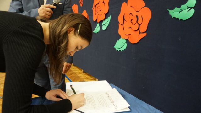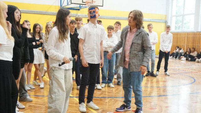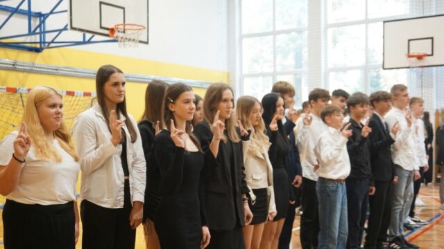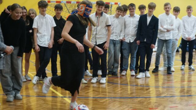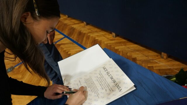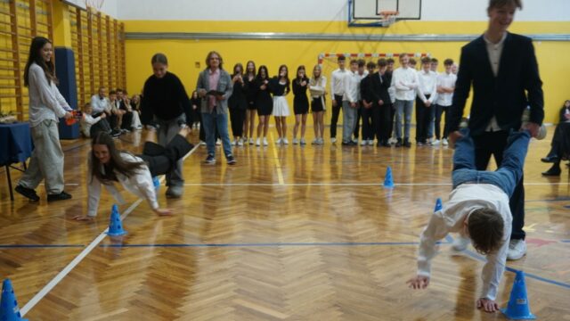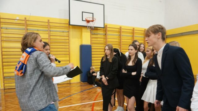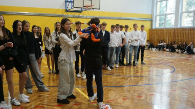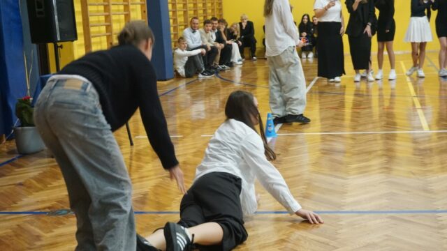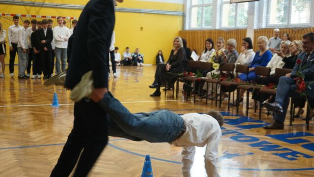 Druga część spotkania była dedykowana uczniom klasy pierwszej. Najpierw złożyli oni uroczyste ślubowanie, a następnie przeszli chrzest bojowy, starując w konkurencjach przygotowanych dla nich przez uczniów z klas drugich. W pierwszym etapie odpowiadali na pytania dotyczące swojej nowej szkoły, zaś później musieli się wykazać sprawnością fizyczną. Ostatecznie decyzją przewodniczącego szkoły pierwszoklasiści zostali przyjęci do licealnej społeczności.