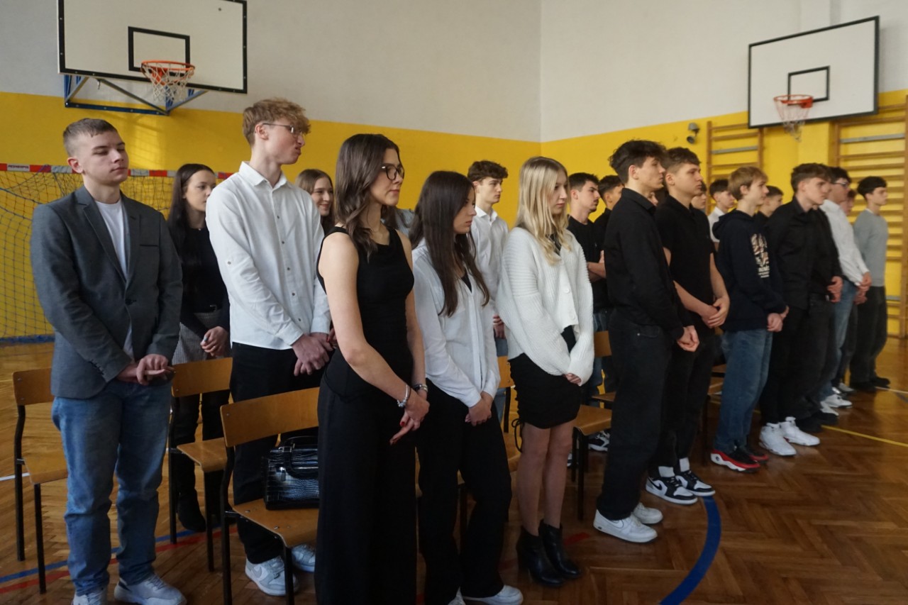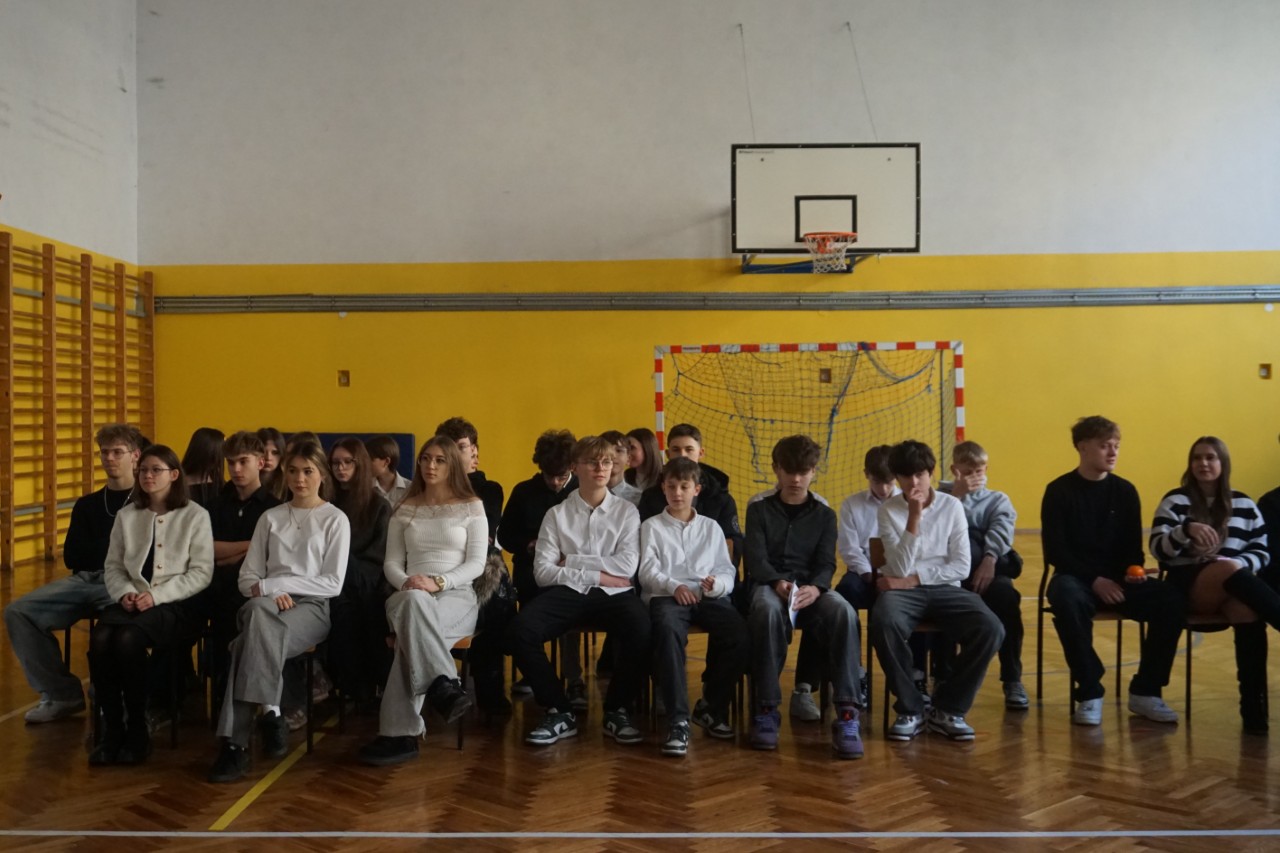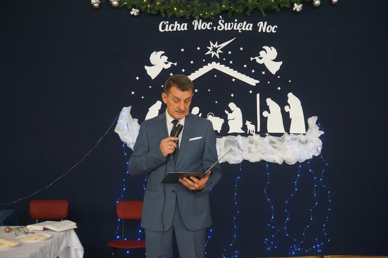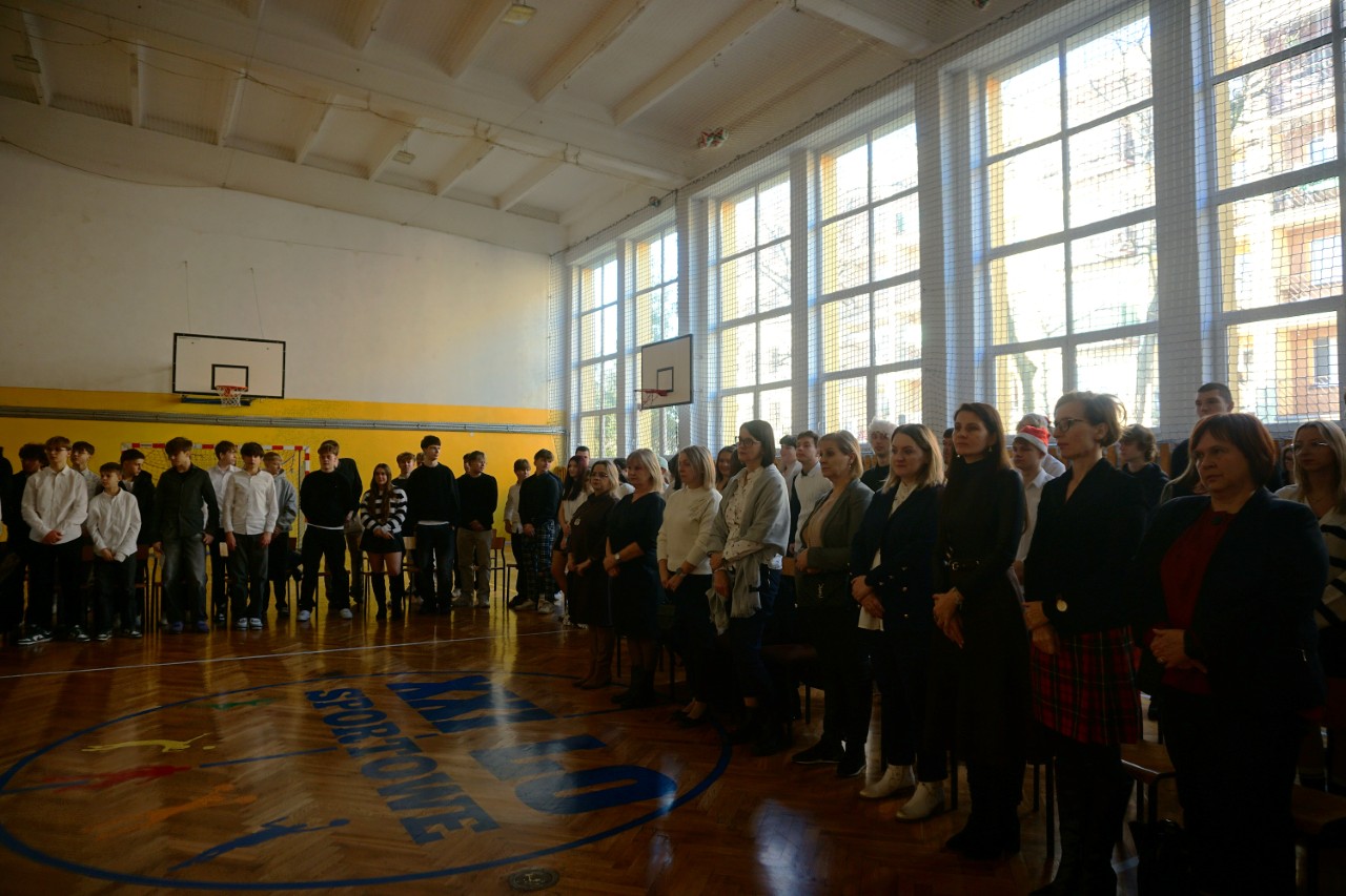 Dziś, punktualnie o godzinie 9.00, społeczność naszego liceum zgromadziła się w hali sportowej, aby wziąć udział w spotkaniu opłatkowym. Poprowadził je ksiądz Bartosz Bąk, który skierował do zebranych kilka okazjonalnych słów. Życzył, aby te święta były czasem spokoju i refleksji, spełnienia marzeń; zachęcał do podążania za głosem serca, niezrażania się porażkami, które należy traktować jako cenne życiowe lekcje. Następnie odczytał fragment „Ewangelii św. Łukasza” i zaprosił wszystkich do wspólnej modlitwy oraz kolędowania. Następnie głos zabrał dyrektor szkoły p. Marek Niemczura, życząc nauczycielom i młodzieży zdrowych, spokojnych świąt Bożego Narodzenia oraz szczęśliwego Nowego Roku. Po części oficjalnej uczniowie udali się do swoich klas, by zasiąść przy uroczyście zastawionym wigilijnym stole.